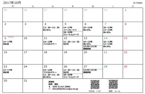 10月のカレンダーができました! 今月はかなり変則的になっています。お気をつけください。