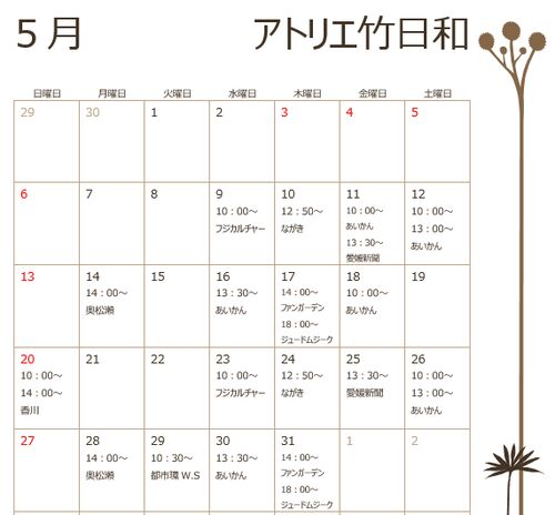 5月のカレンダーです。 GWがあって変則的になっておりますのでご注意ください! よろしくお願いいたしますm(_ _)m